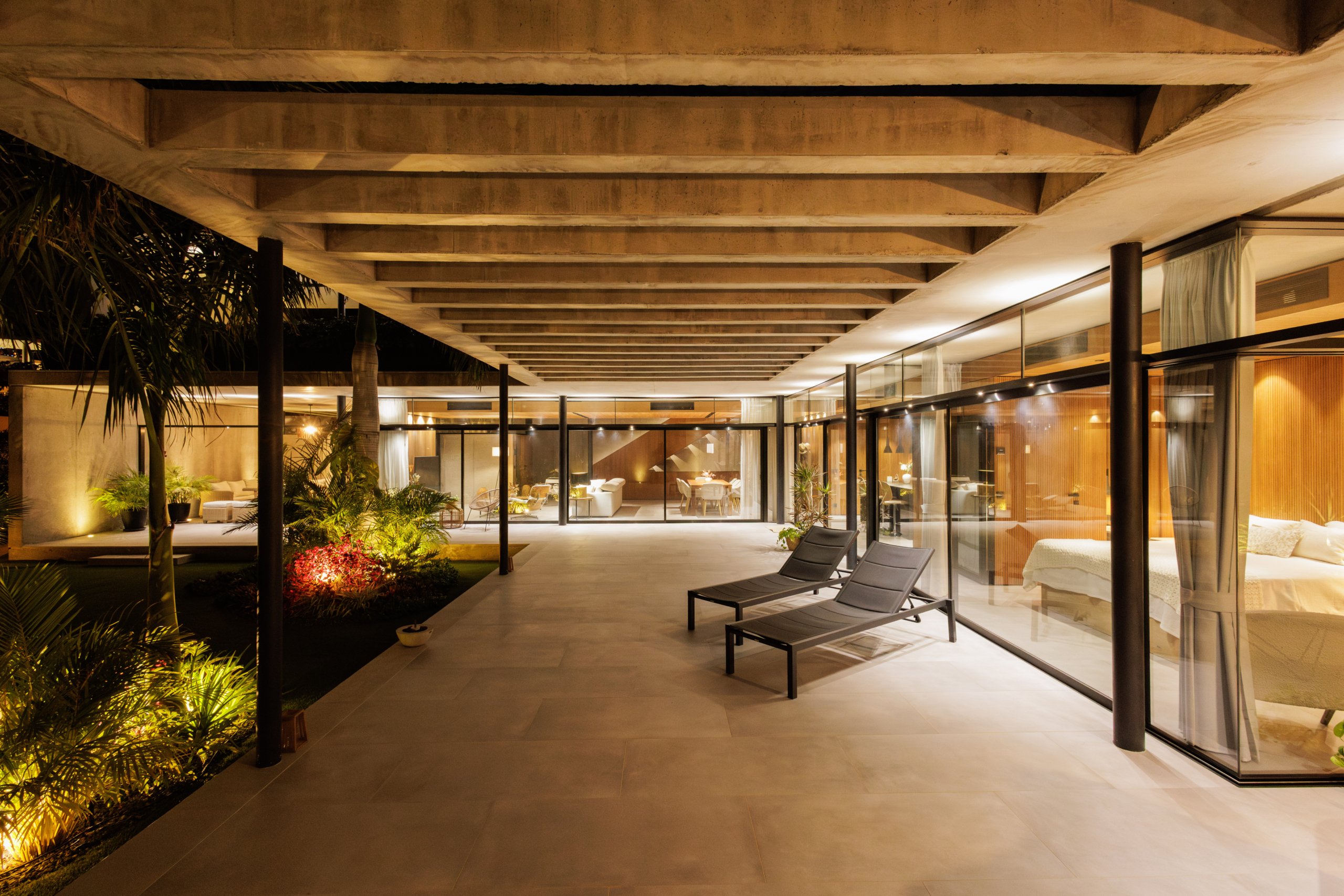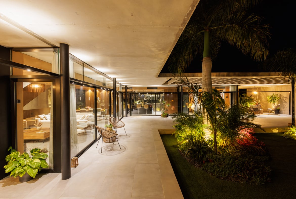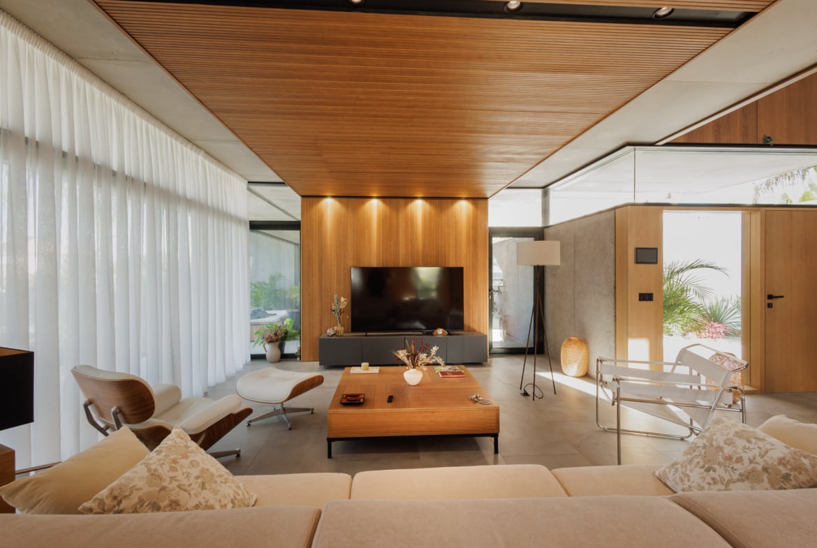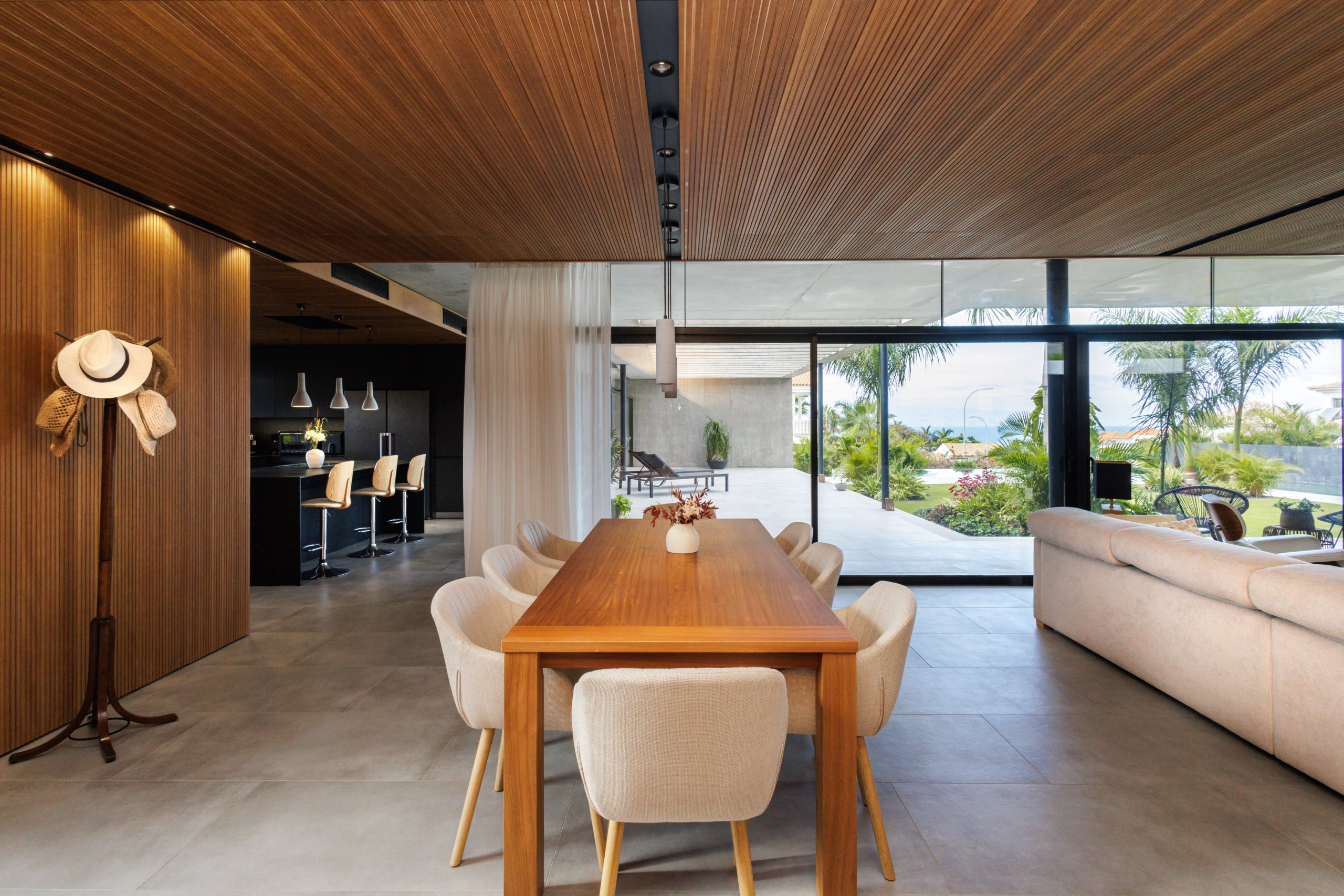 This prestigious villa features contemporary architecture combining wood and natural stone, clean lines, and a minimalist design. The exterior is built with high-quality materials such as glass, steel, and concrete, enhancing its aesthetic appeal while ensuring durability. The property sits on a generous 1,000 m² plot, with a built area of 500 m², offering ample space for luxury living.