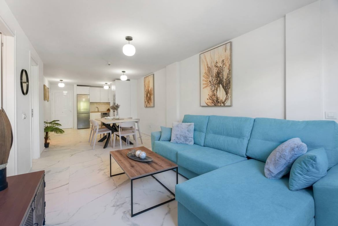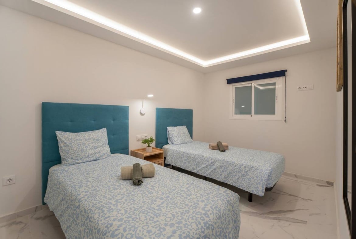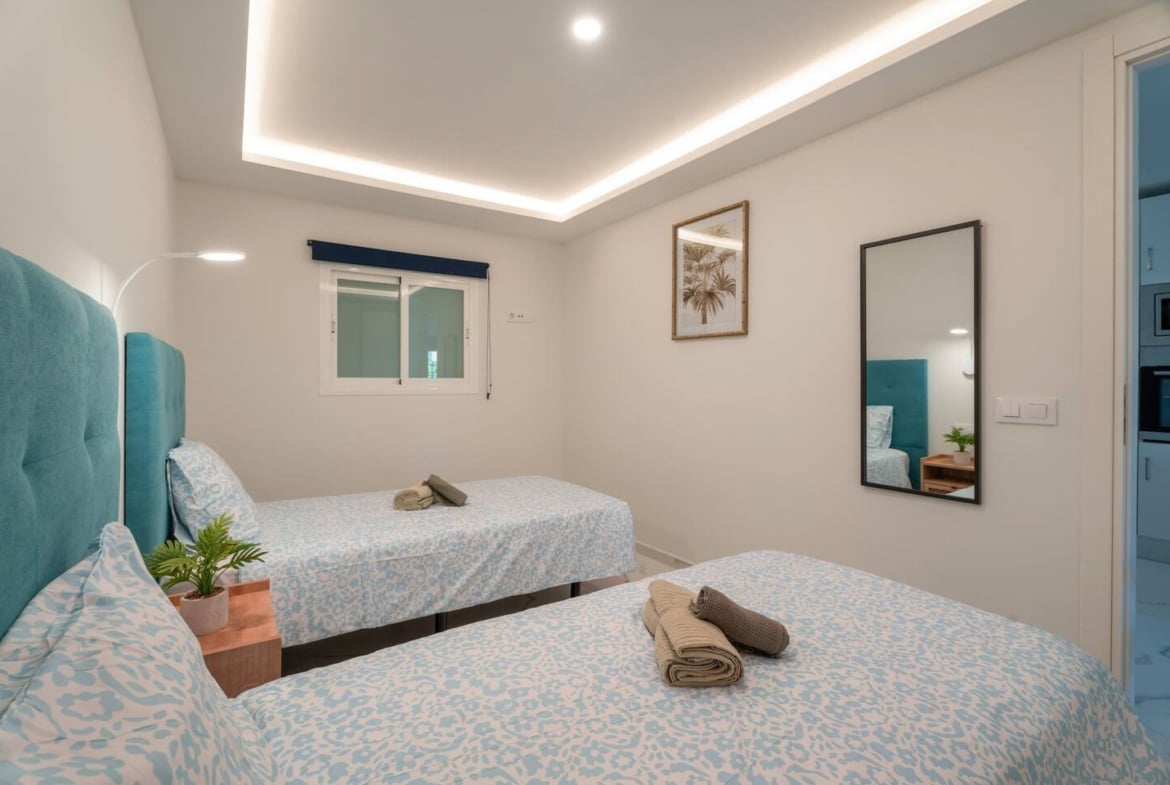 It features two spacious bedrooms, both with fitted wardrobes and decorated in a modern and cozy style that provides brightness and comfort.