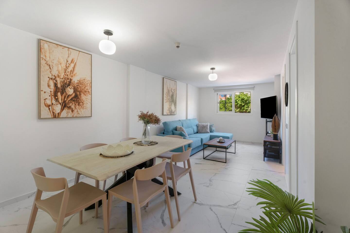 The living-dining room is spacious and very bright, with an integrated kitchen fully equipped with quality appliances and a functional layout, ideal both for living and renting.